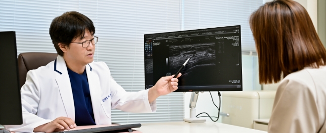 30년 이상 경력을 가진 유방 외과 전문의가 직접 문진 및 촉진을 통해 주 증상, 병력, 가족력 등을 파악하고 초음파와 촬영 결과를 통해 1:1 맞춤 진료를 진행합니다.