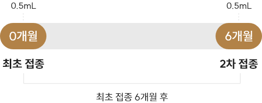 - 0개월(최초 접종일), 6개월의 접종일정에 따라 1회 0.5mL씩 2회 근육주사 합니다.