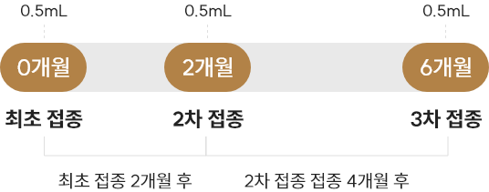 - 0개월(최초 접종일), 2개월, 6개월의 접종일정에 따라 1회 0.5mL씩 3회 근육주사 합니다.